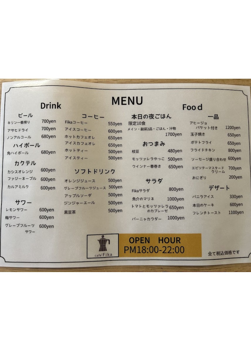 cafe' Fika Menu